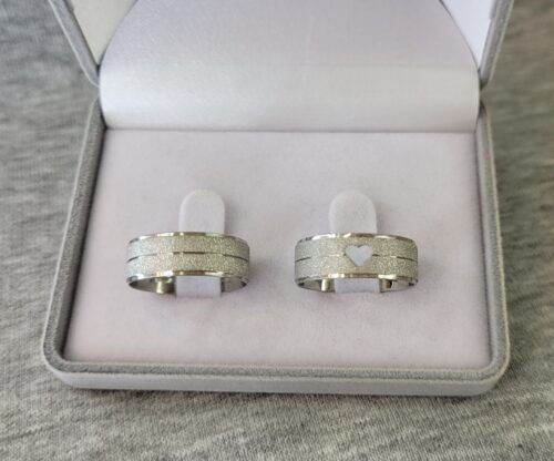 Descrição:Aliança de compromisso ou namoro, exclusiva, produzida em aço inox, reta, diamantada, com friso central, coração vazado e rebaixo polido nas laterais. Excelente durabilidade. Este material não oxida com o tempo como a prata, não demanda manutenção e é altamente resistente a riscos.
