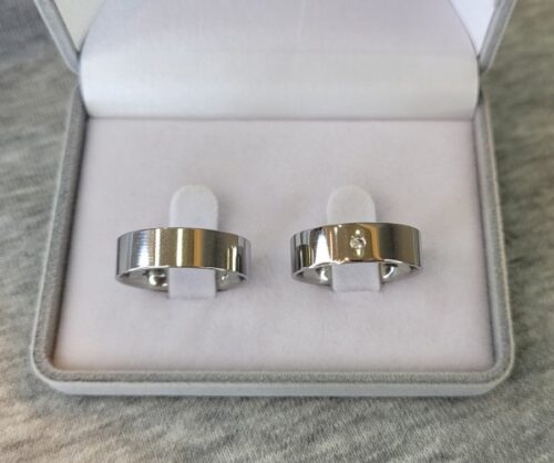 098 / 098-1 : Aliança de Aço Inox Reta com Pedra | 6 mm | Par