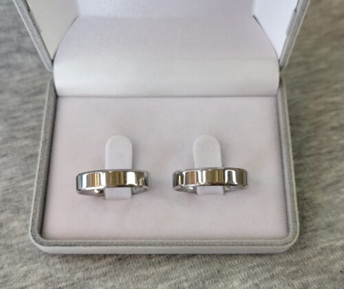 020 / 020-1 : Aliança de Aço Inox Chanfrada com Pedra | 5 mm | Par