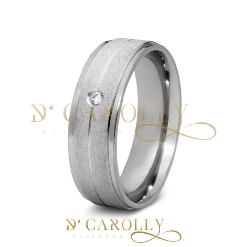 Aliança de aço inox reta com pedra | Fosca | Friso | 6 mm