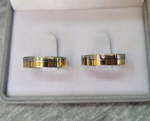 Largura: 5 mm Espessura: 2 mm Material externo:Ouro Material interno: Aço inox Acabamento externo: Másc: Reta, polida, lisa modelo tradicional. | Fem: Reta, polida, lisa, modelo tradicional com 1 pedra de zircônia. Acabamento interno: Anatômica Descrição: Aliança de casamento ou noivado, tradicional, polida, encapada em ouro com 1 pedra de zircônia cravada.