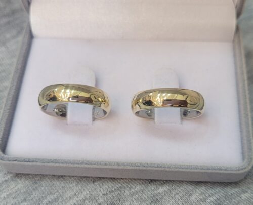 Largura: 5 mm Espessura: 2 mm Material externo:Ouro Material interno: Aço inox Acabamento externo: Másc: Abaulada, polida, lisa modelo tradicional. | Fem: Abaulada, polida, lisa, modelo tradicional com pedra de zircônia cravada no centro. Acabamento interno: Anatômica Descrição: Aliança de casamento ou noivado, tradicional, polida, encapada em ouro com pedra de zircônia cravada.