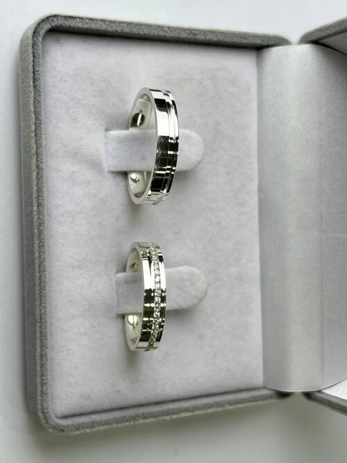 AG AMSTERDÃ / AG AMSTERDÃ-1 : Aliança de Prata Reta com Pedras | Friso | 4 mm | Amsterdã | Par