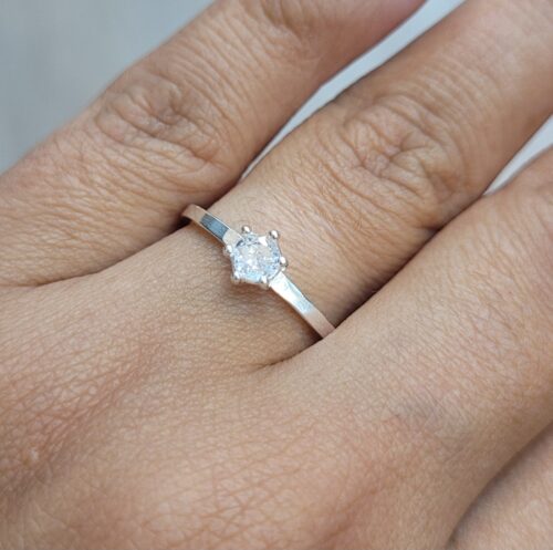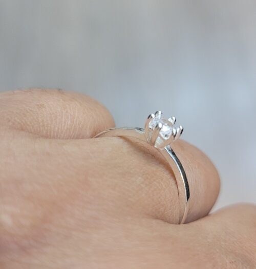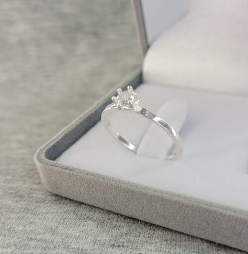 Anel Solitário de Prata, caixa de pedra pequena