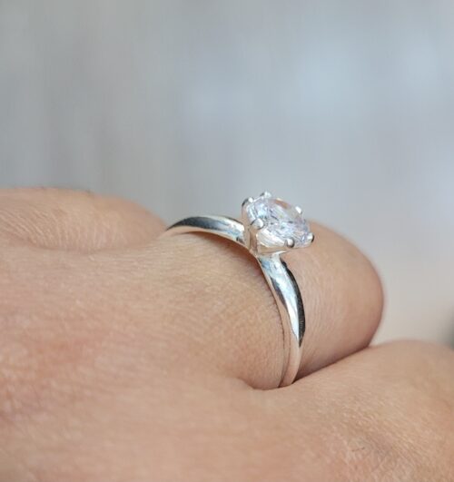Anel Solitário de Prata Lisa, com caixa de pedra pequeno em destaque.