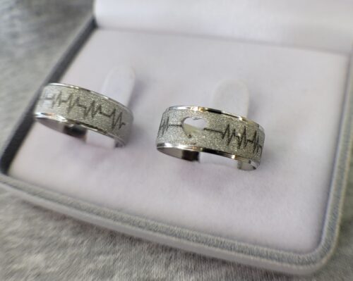 1003 / 1003-C : Aliança de Aço Inox Reta com Coração | Batimentos | Diamantada | Rebaixo | 7 mm | Par