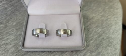382 / 382-1 : Aliança de Aço Inox Abaulada com Pedra | Fosca | Friso | 6 mm | Par