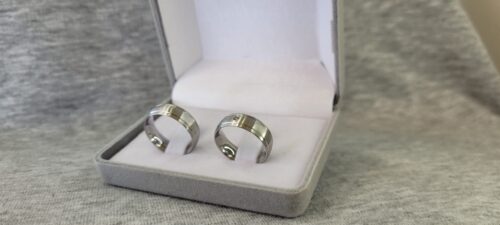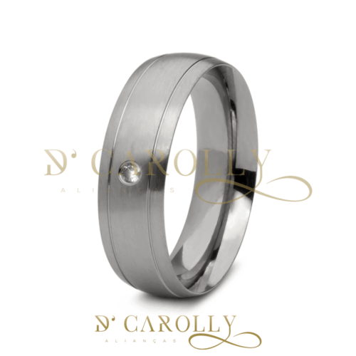 Descrição:Aliança de compromisso ou namoro, discreta, produzida em aço inox com acabamento fosco (ou escovado), cravação de pedra de zircônia e frisos nas laterais. Excelente durabilidade. Este material não oxida com o tempo como a prata, não demanda manutenção e é altamente resistente a riscos.