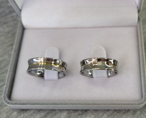 309/ 309-1 : Aliança de Aço Inox Côncava com Pedra | Friso | Filete de Ouro | 6 mm | Par