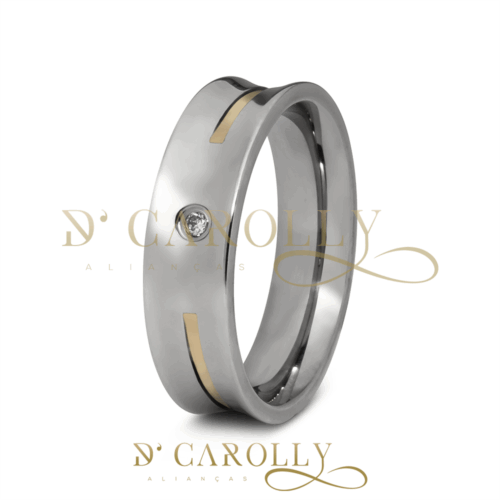 Aliança de aço inox côncava com pedra | Friso | Filete de ouro | 6 mm
