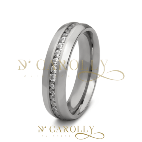 Aliança de aço inox abaulada com pedras | Friso | 5 mm | Milão