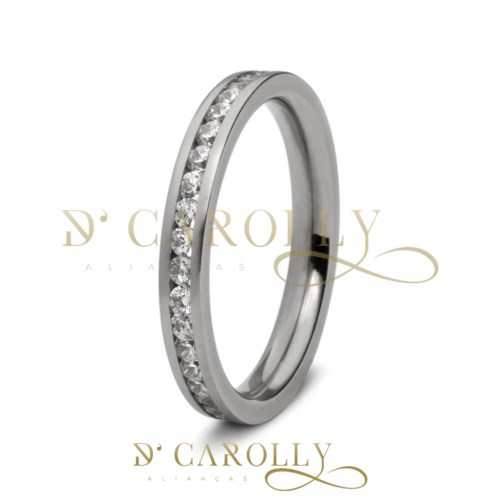 Aliança de aço inox reta com pedras | Friso | 2,5 mm | Gênova