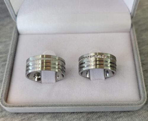 Berlim 351 / Berlim 351-1 : Aliança de Aço Inox Reta com Pedras | Frisos | 8 mm | Berlim | Par