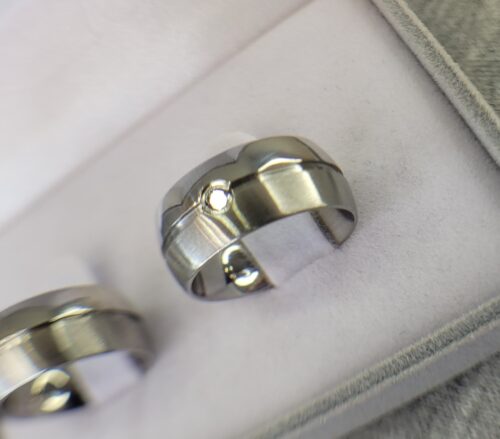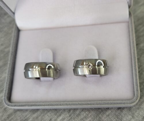407/407-1 : Aliança de Aço Inox com Pedra | Friso | Fosca | 8 mm | Par