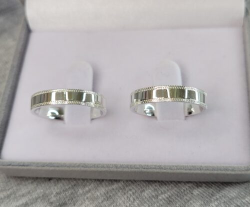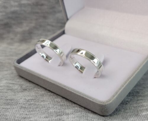 Aliança de prata Reta | Canto Recartilhado | 4mm | Par