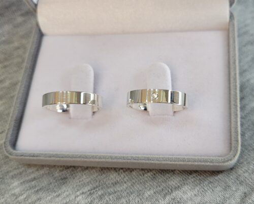 Largura: 4 mm Espessura: 1,3 mm Material:Prata 950 Acabamento externo: Másc.: Reta, polida, lisa, modelo tradicional. |  Fem.: Reta, polida, lisa, modelo tradicional, com pedra de zircônia cravada no centro. Acabamento interno: Anatômica Descrição: Aliança de compromisso ou namoro, tradicional, lisa, com pedra de zircônia cravada. IMPORTANTE: A prata é um metal nobre! Demanda alguns cuidados relacionados ao uso, como característica do material, tende a oxidar quando exposto a alguns produtos químicos e índices elevados de ácido úrico.