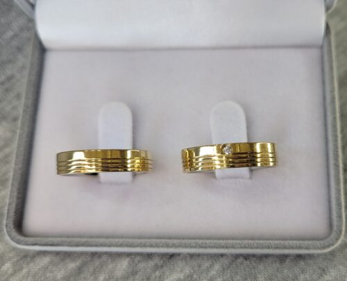 MA04 / MA04-1 : Aliança de Moeda Reta com Pedra | 3 Frisos | 5 mm | C/ forro | Par