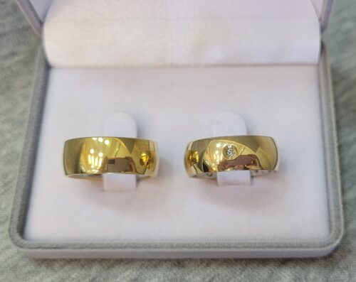 MA08 / MA08-1 : Aliança de Moeda Abaulada com Pedra | Tradicional | 8 mm | C/ Forro | Par