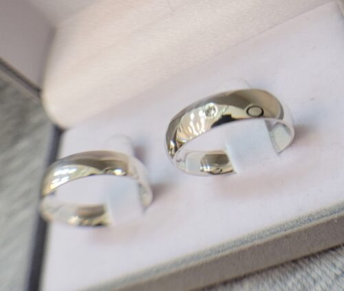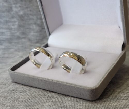 AG106/ AG106-1 : Aliança de Prata Abaulada com Pedra | Tradicional | 5 mm | Par