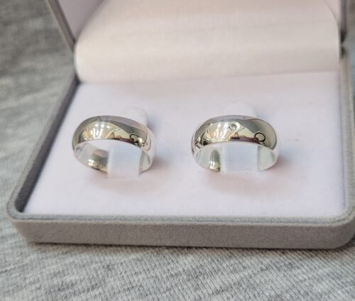 AG114/ AG114-1 : Aliança de Prata Abaulada com Pedra | Tradicional | 6 mm | Par