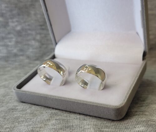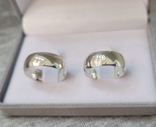 AG115/ AG115-1 : Aliança de Prata Abaulada com Pedra | Tradicional | 7 mm | Par