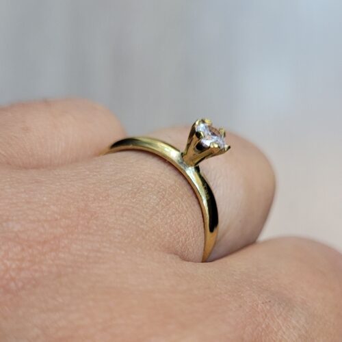 Descrição: Solitário em liga de moeda antiga, com pedra de zircônia.