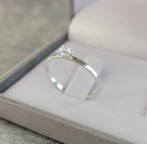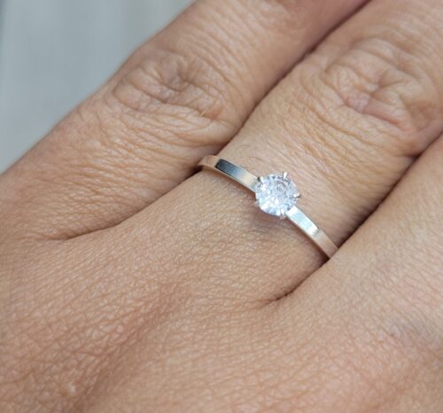Anel Solitário de Prata com uma pedra de Zirconia.