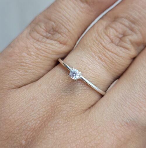 Anel Solitário de Prata com uma pedra de Zirconia. Largura: 1 mm Espessura: 1 mm Material:Prata 925 Acabamento externo: Levemente abaulado, polido. Acabamento interno: Reto Descrição:Solitário em Prata 925, fino, com pedra alta. IMPORTANTE: A prata é um metal nobre! Demanda alguns cuidados relacionados ao uso, como característica do material, tende a oxidar quando exposto a alguns produtos químicos e índices elevados de ácido úrico.